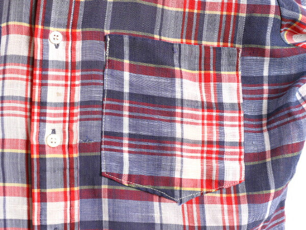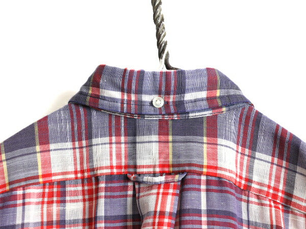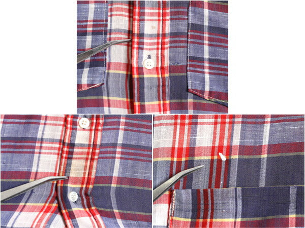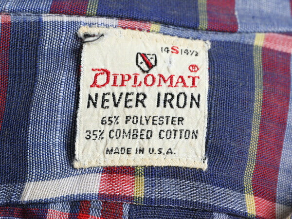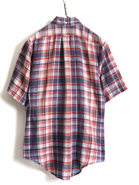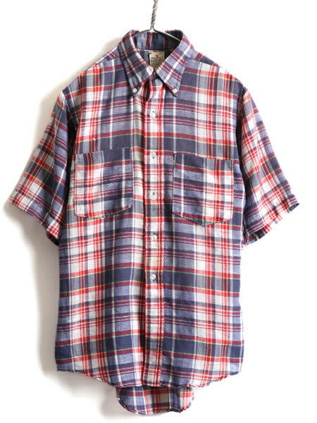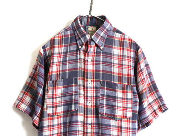 60s 70s USA製 ★ チェック 3点留め ボタンダウン 半袖 シャツ ( メンズ S ) 60年代 70年代 ビンテージ ポケット付き テーパード スリム