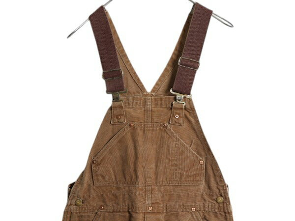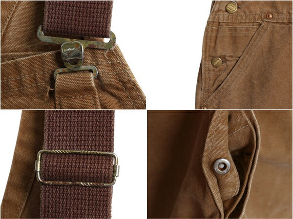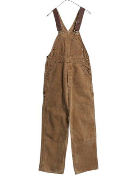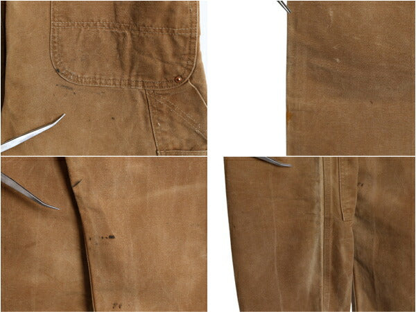 60s 70s USA製 ★ カーハート ダブルニー ブラウン ダック オーバーオール 実寸 W35 ヴィンテージ ツナギ ペインター ワーク ストレート 茶