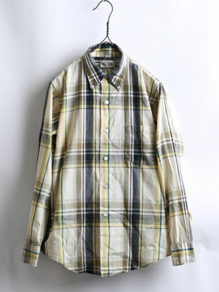 70s ★ MODEL チェック 柄 片ポケ コットン 長袖 ボタンダウン シャツ ( メンズ 男性 小さめ XS~S程 ) 70年代 ビンテージ 古着 USED