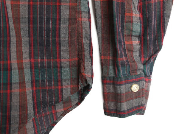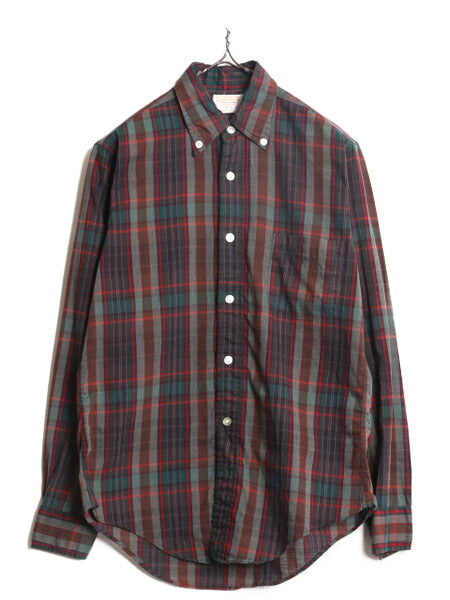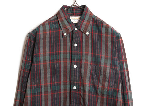 60s ★ チェック 3点留め ボタンダウン 長袖 シャツ メンズ S / 60年代 ヴィンテージ コットン BD テーパード マルチカラー ポケット付き