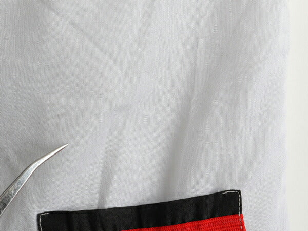 肩、ポケットにライン、左胸、バックにチェーンステッチ刺繍入り、ボックスシルエット。