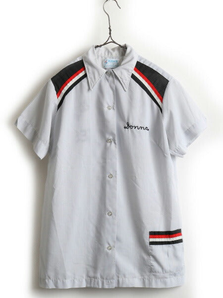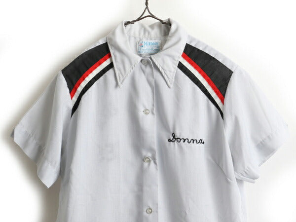 70's Hilton ヒルトン ビッグ チェーンステッチ 刺繍 半袖 ボーリング シャツ (36 レディース M 程)