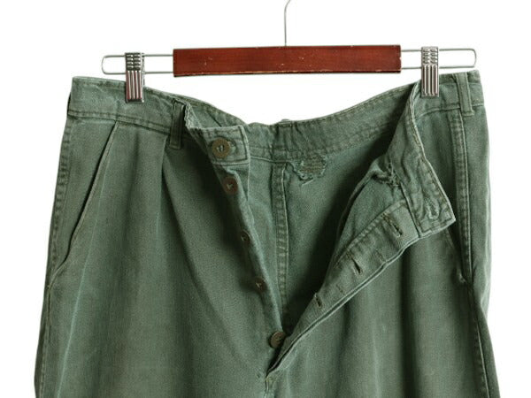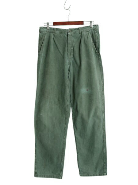70s ★ スウェーデン軍 実物 コットン ユーティリティ ワーク パンツ メンズ 34 32 程 ユーロ ヴィンテージ ミリタリー テーパード 軍物 緑
