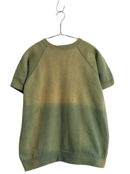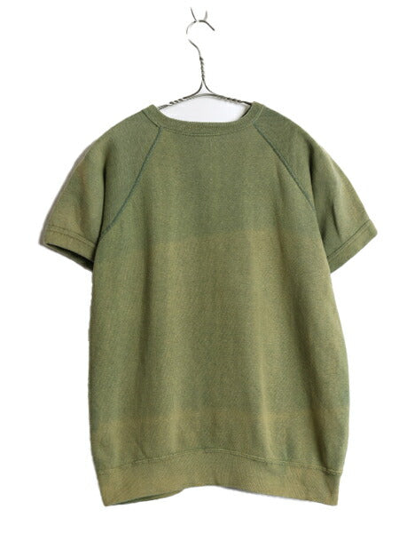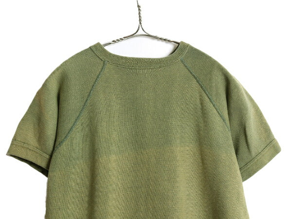 60s ★ 雰囲気系 ラグラン 100% コットン 半袖 スウェット メンズ S レディース M 程/ 古着 ヴィンテージ トレーナー 裏起毛 無地 オリーブ