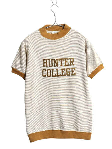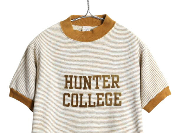 60s ★ カレッジ フロッキー プリント 半袖 スウェット メンズ S / ヴィンテージ ベルバシーン ボーダー トレーナー 裏起毛 モックネック