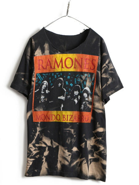 90s カットオフ ★ RAMONES 両面 プリント 半袖 Tシャツ ( メンズ XL 程) 古着 90年代 ラモーンズ バンド ロック パンク タイダイ オールド