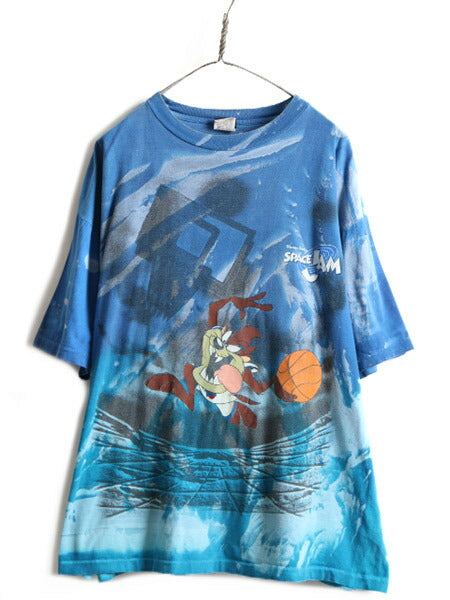 90s ★ SPACE JAM タイダイ タズマニアンデビル プリント 半袖 Tシャツ ( メンズ XL ) 古着 ルーニー テューンズ 映画 ムービー キャラ 青
