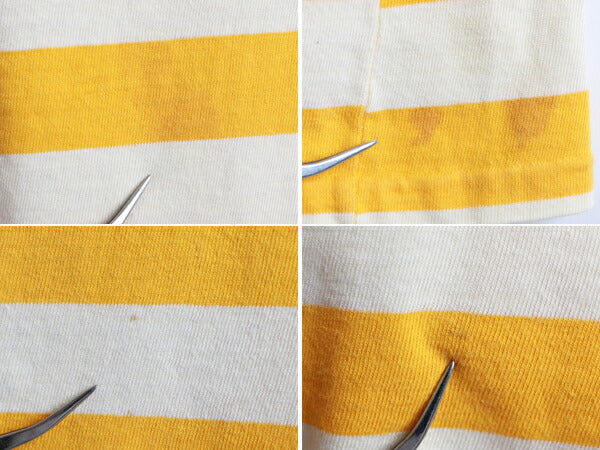 コンディションはバックの左袖付け根にピンホール、フロント中央、左裾、右裾あたりに薄ヨゴレ、バック左袖に薄ヨゴレがあります。
