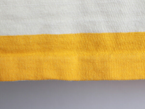 70s ★ コットン 2色 ボーダー 柄 半袖 モックネック Tシャツ ( メンズ 男性 M ) 70年代 ビンテージ 古着 黄 × 白 USED