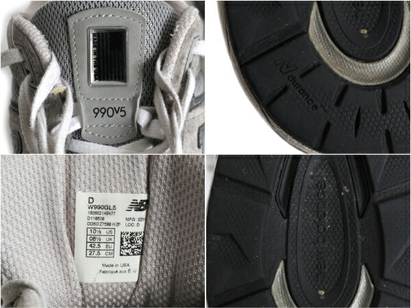 USA製 ★ ニューバランス 990 V5 スニーカー レディース 10 1/2 実寸 メンズ 27.5cm 程/ ランニング シューズ アウトドア メッシュ グレー