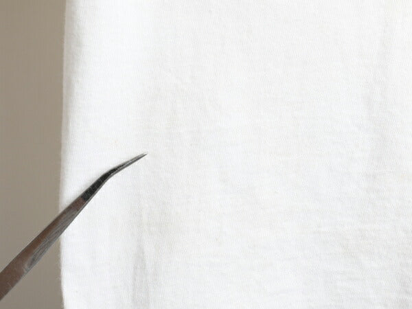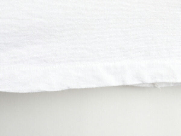 プリントは染み込み、細めのリブが首と袖口に付いたリンガーボディです。