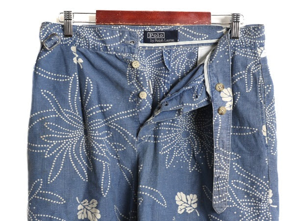 90s ★ ポロ ラルフローレン グルカ タイプ ショートパンツ メンズ 32 程 アロハ ハワイアン ドット 総柄 コットン ショーツ インディゴ 青