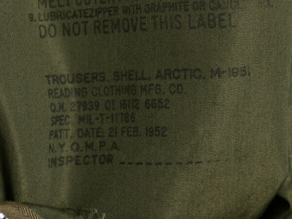 制式名称 TROUSERS SHELL ARCTIC M-1951
