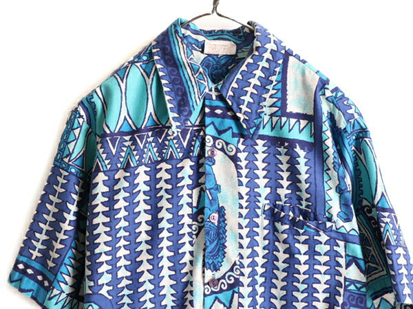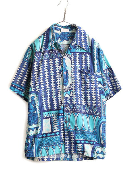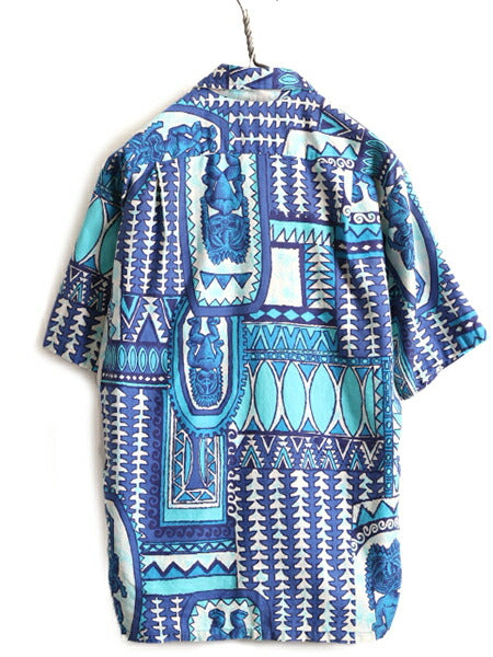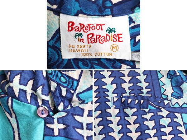 70s ★ ベアフットインパラダイス 総柄 ループ留め オープンカラー コットン アロハシャツ メンズ M / 70年代 ビンテージ 半袖シャツ 開襟