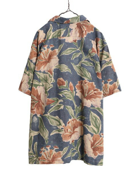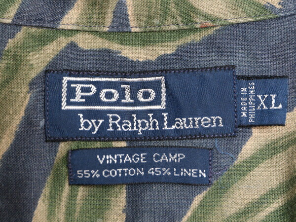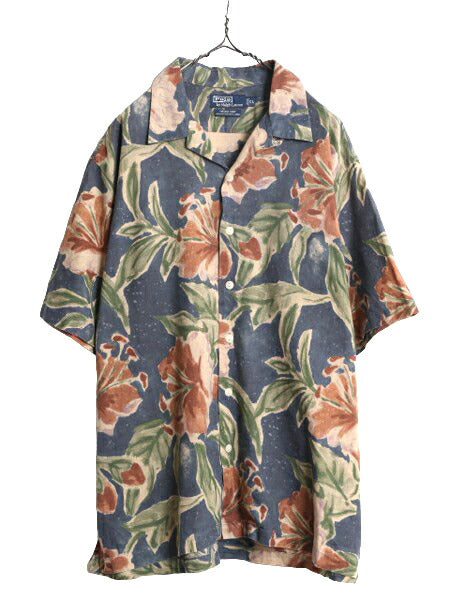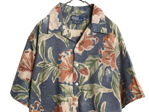 90s ★ ポロ ラルフローレン アロハ シャツ メンズ XL 90年代 オールド ハワイアン コットン リネン ループ留め オープンカラー 開襟 総柄