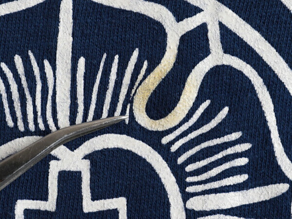 コンディションはプリント一部に変色、左袖に小さいプリント移り、左脇腹に薄シミ、背中にホールリペアがあります。