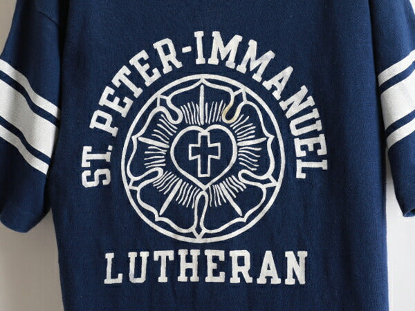 70年代のチャンピオンのカレッジプリントフットボールTシャツです。