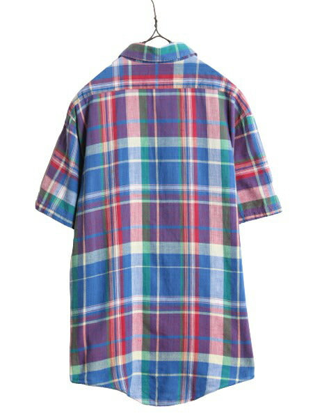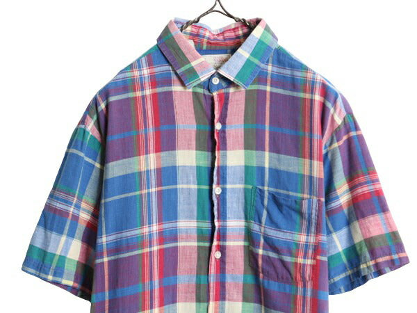 70s 80s USA製 ★ インディア マドラス チェック 半袖 シャツ メンズ L / 70年代 80年代 ヴィンテージ コットン マルチカラー ポケット付き