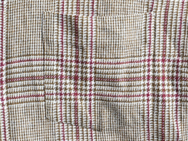 ブラウン×エンジの落ち着いたカラーのチェック柄が非常にナイスな一枚です。