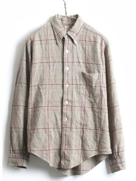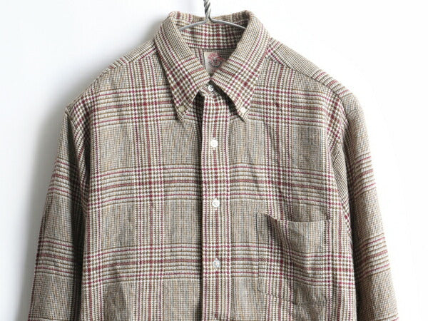 60's チェック ウール 長袖 ボタンダウン シャツ (M 程)