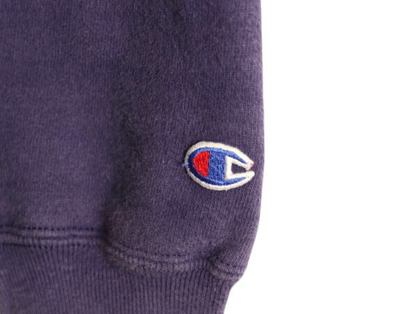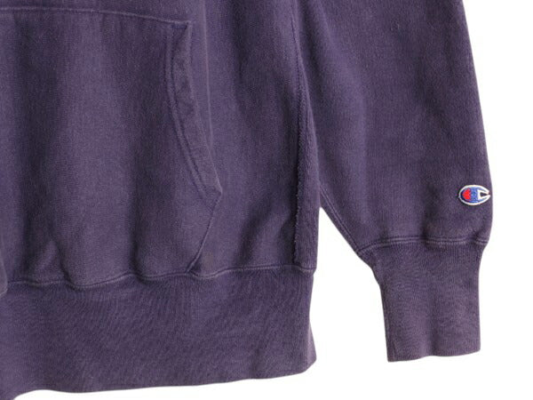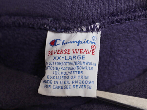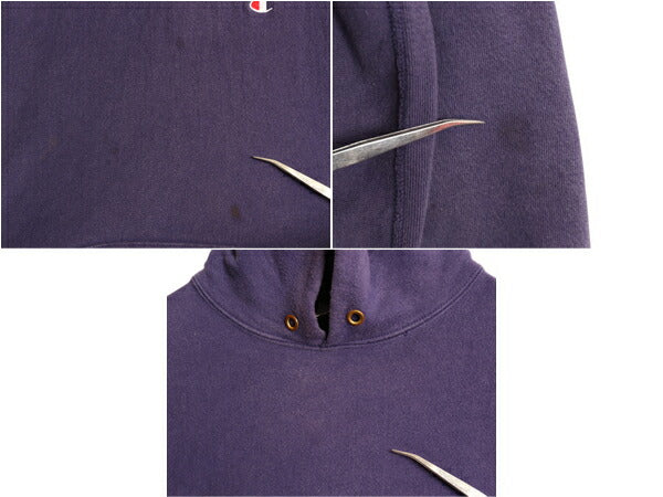 90s USA製 ★ チャンピオン リバースウィーブ スウェット フード パーカー メンズ XXL 古着 オールド フーディ ワンポイント 目付き ナス紺