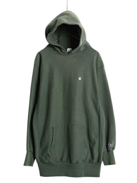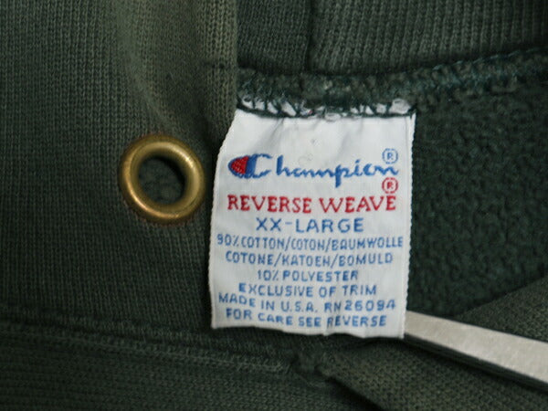90s USA製 ★ チャンピオン リバースウィーブ スウェット フード パーカー メンズ XXL オールド ワンポイント 目付き 大きいサイズ 2XL 緑