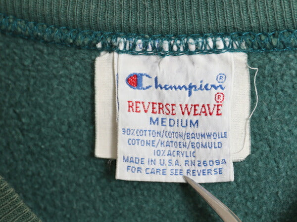 90s USA製 ★ チャンピオン リバースウィーブ スウェット メンズ M 古着 オールド トレーナー 裏起毛 ワンポイント ヘビーウェイト 目付き