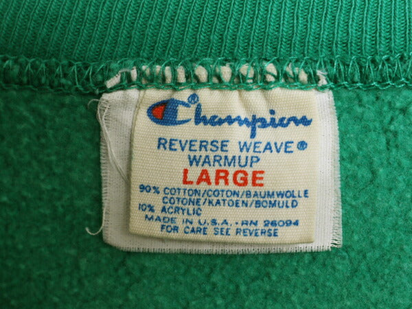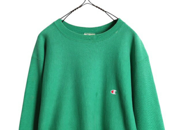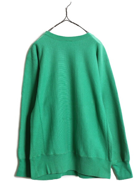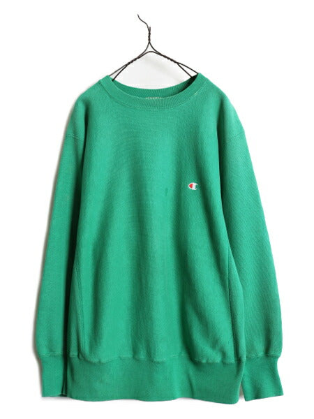 80s USA製 ★ チャンピオン リバースウィーブ スウェット メンズ L 古着 ヴィンテージ トレーナー ワンポイント ヘビーウェイト 目付き 緑