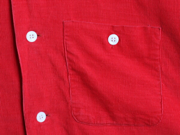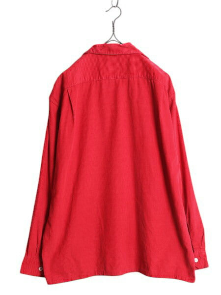 50s ★ BUD BERMA コーデュロイ オープンカラー シャツ メンズ XL / 古着 ヴィンテージ ループ留め 開襟 ボックス 細畝 コットン 無地 赤