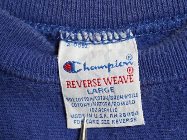 90s USA製 ★ チャンピオン リバースウィーブ スウェット メンズ L 古着 オールド トレーナー 裏起毛 ワンポイント ヘビーウェイト 目付き