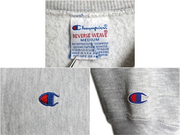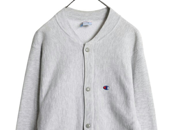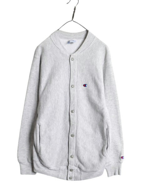 90s USA製 ★ チャンピオン リバースウィーブ スナップ カーディガン メンズ M 古着 スウェット トレーナー ポケット付き 前開き 目付き 灰