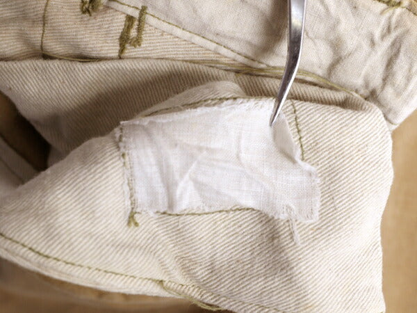 右腿にリペア、右ひざに薄ヨゴレとホツレ