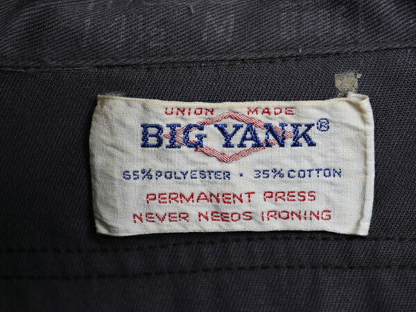 70s USA製 ★ ビッグヤンク 長袖 ワーク シャツ メンズ M 古着 ヴィンテージ ポケット付き ノーアイロン 無地 マチ付き チャコール グレー