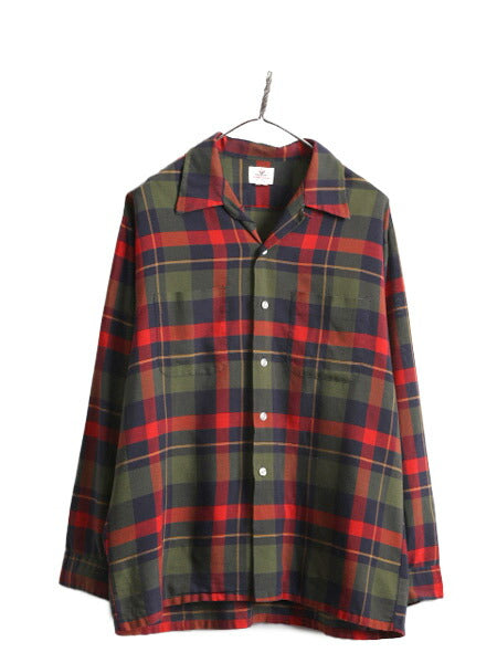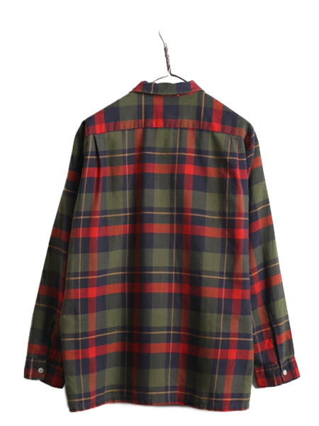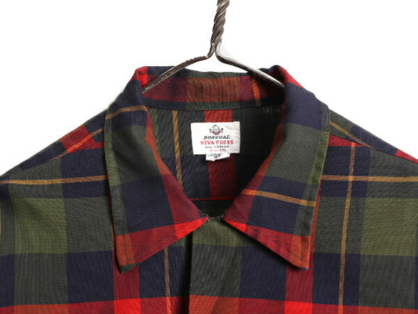 60s ★ DONEGAL チェック ループ留め オープンカラー 長袖 シャツ メンズ L / 60年代 ヴィンテージ コットン ボックス 開襟 ポケット付き