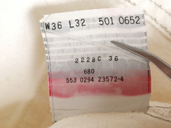90s USA製 ★ リーバイス 501 0652 ナチュラル デニム パンツ メンズ 36 32 / Levis ジーパン ジーンズ ストレート ボタンフライ 生成り 白
