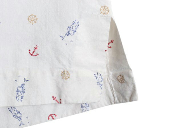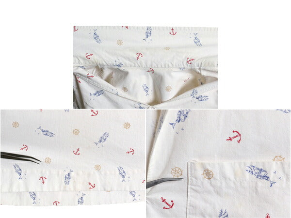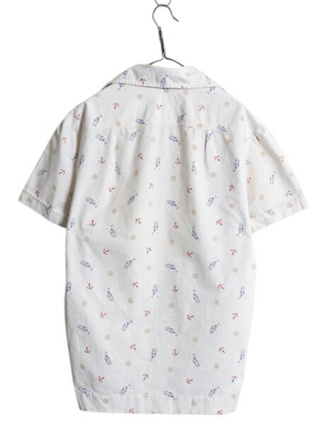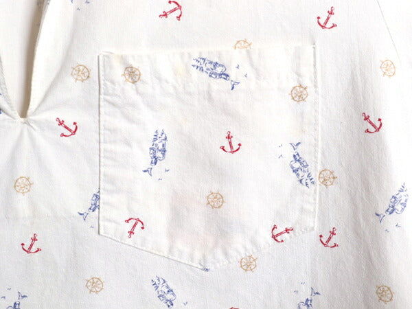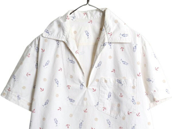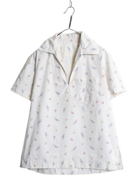 60s 70s ★ 総柄 コットン キャンバス 半袖 スキッパー シャツ メンズ L 古着 ヴィンテージ プルオーバー オープンカラー ボックス マリン