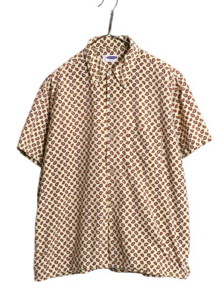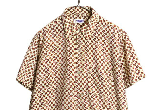60s 70s ★ ペイズリー 総柄 半袖 ボタンダウン シャツ メンズ L / 古着 ヴィンテージ BD ボックス 100% コットン ポケット付き アイビー