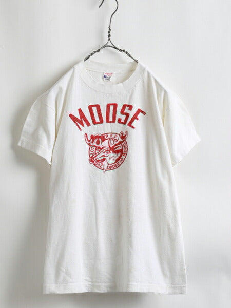 50s ★ Champion チャンピオン ランナーズ タグ MOOSE フロッキー プリント 半袖 Tシャツ ( メンズ 男性 M ) 50年代 ビンテージ ランタグ