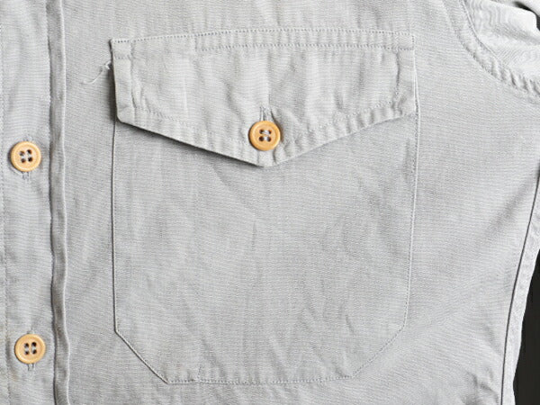 通年着れるポプリン素材、シンプルな見た目に武骨な雰囲気があるクールな一品です。