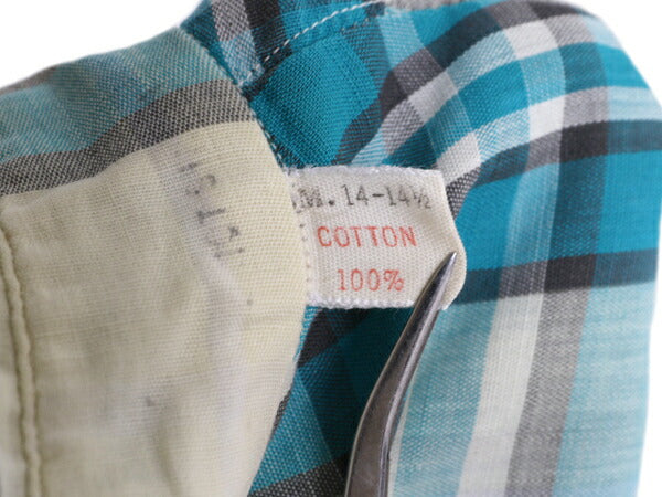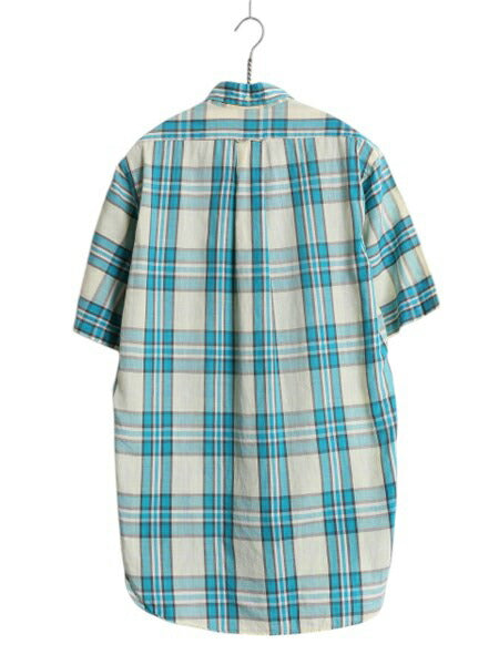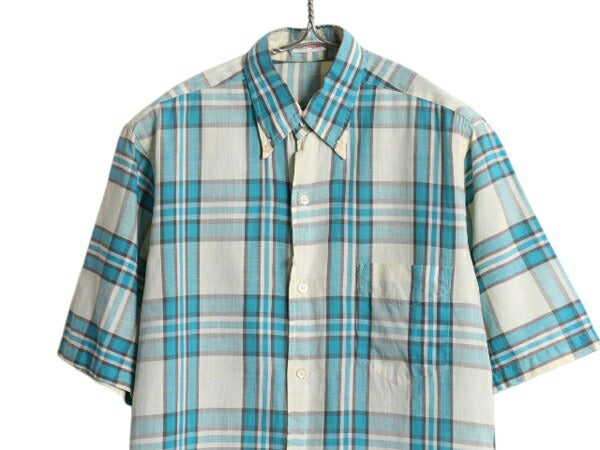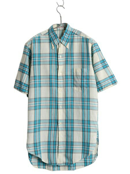 60s USA製 ★ ガント チェック 3点留め ボタンダウン シャツ メンズ S ヴィンテージ 半袖シャツ 100% コットン マチ付き スリム テーパード
