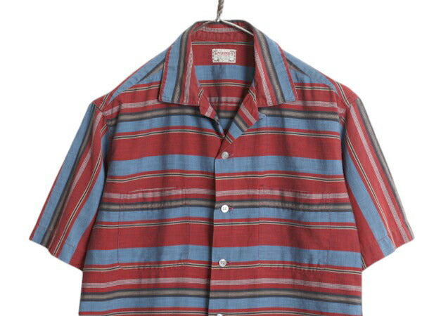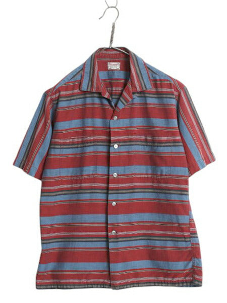 60s USA製 ★ マクレガー ボーダー オープンカラー シャツ メンズ M / 古着 ヴィンテージ 半袖シャツ ループ留め 開襟 ボックス コットン