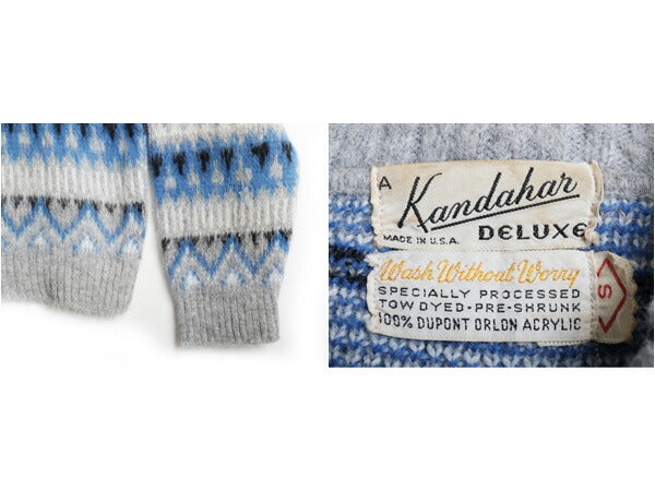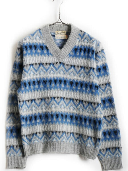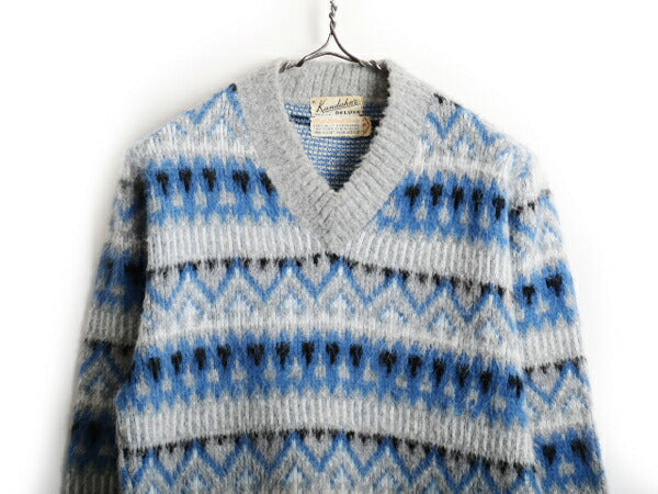 60's 70's Kandahar カンダハー 総柄 Vネック アクリル ニット セーター (S)