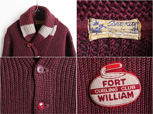 50's Curl-Rite サガラワッペン付き ショールカラー ウール ニット カーディガン (L程)