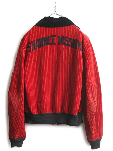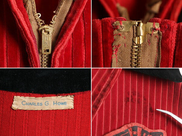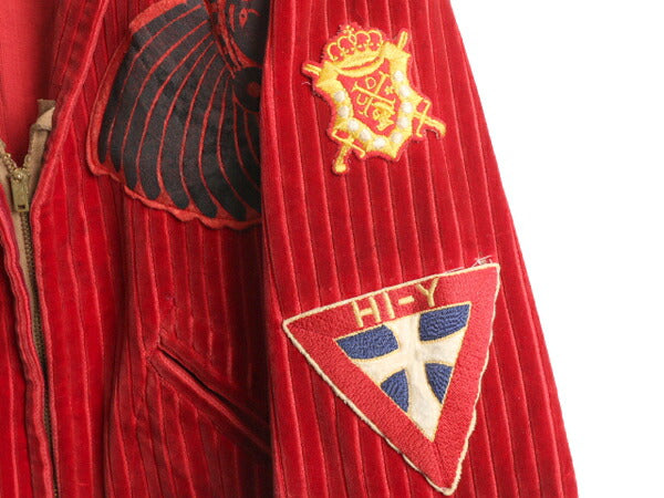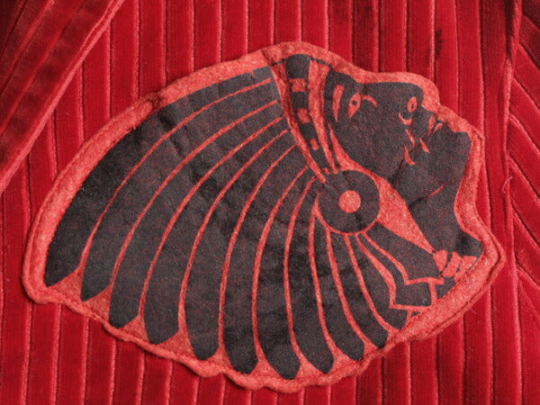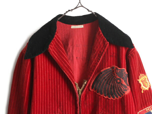30s ★ ベルベット 針抜き スポ―ツ ジャケット メンズ S 30年代 ヴィンテージ スポジャケ インディアンヘッド ベロア ハトメ コの字 赤 黒
