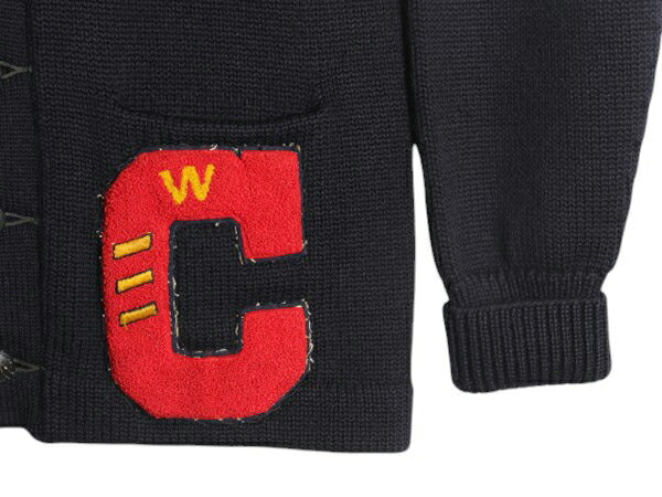40s 50s ★ レタード ニット カーディガン メンズ M 古着 ヴィンテージ ウール アワード セーター カレッジ スター サガラ ワッペン 黒 赤
