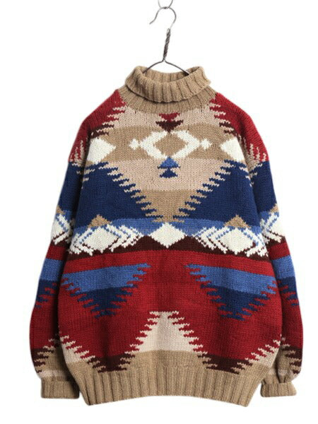 80s ★ ラルフローレン カントリー ネイティブ タートルネック ニット セーター メンズ レディース M ポロ ウール ビンテージ ハンドメイド