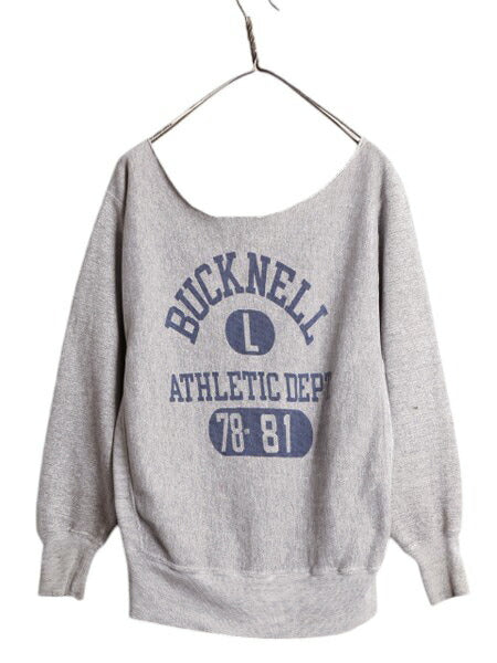 カスタムメイド 70s ★ チャンピオン リバースウィーブ スウェット メンズ M 程/ 単色タグ ヴィンテージ 4段 染込み カレッジ プリント 灰