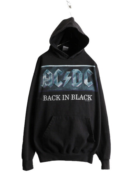 90s AC/DC ロゴ プリント スウェット パーカー メンズ M / 黒 古着 90年代 バンド ロック フード トレーナー オフィシャル 当時物 ブラック