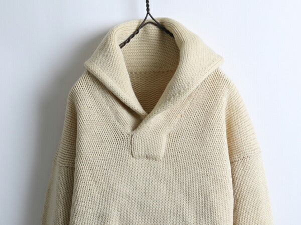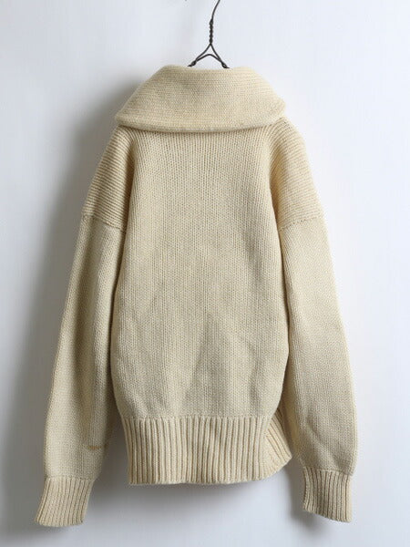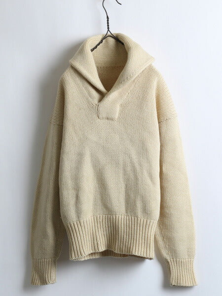 30's ★ ブランド不明 アイボリー ショールカラー ウール ニット セーター ( メンズ 男性 S程 ) 30年代 ビンテージ 古着 生成り ローゲージ