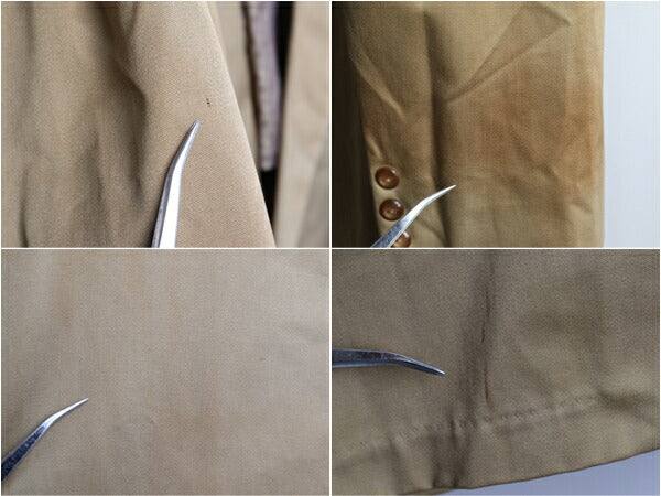 コンディションは全体的に少しムラが出たような色ヤケや変色、右袖口に薄汚れ、襟と右肩縫い目近くにキズ、左肩にリペア、後裾に軽い汚れがあります。